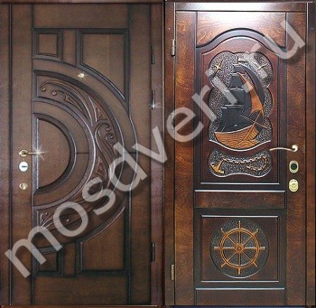 Элитная дверь в квартиру с отделкой массивом и фигурной резкой — совмещает стильный внешний вид и высокую надёжность.